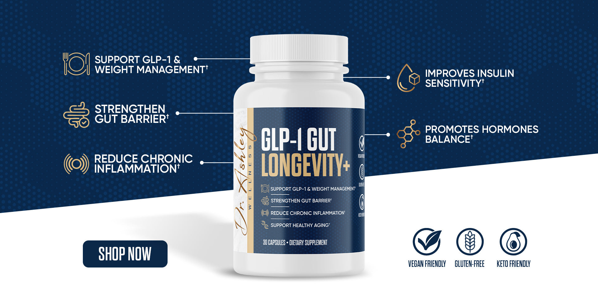 Rebalance your gut, activate your body’s natural metabolic signals, and support healthy aging with Dr. Ashley’s Gut Longevity+, a cutting-edge formula combining gut microbiome science with the most powerful polyphenols for metabolism and longevity.